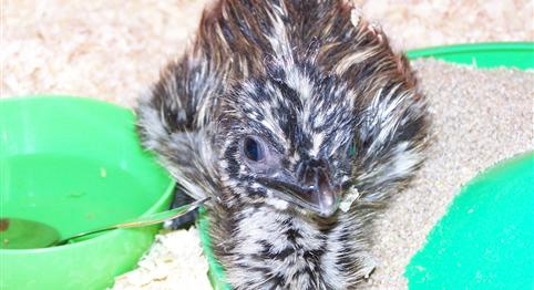 Emus become sexually mature around two years old. They usually pair up in their second autumn, ready to breed during the winter. In the wild the pair will remain together for around 5 months and their courtship includes nest building. Our emus have grown as a pair and are extremely close all year around. Our pair breed from the end of December through to March, laying every three days, producing around 30-40 eggs per year. During the mating season the male grunts a lot while the female drums, while both reduce their food intake. The females will dominate the male during pair formation, however the male is left with the job of incubating the eggs. The female may then find another mate to breed with. During the incubation period the male becomes aggressive and protective over the eggs. The male is known to incubate without feeding, drinking, or leaving the nest. We don't let our male do the incubating as this would stop the mating process and reduce the amount of eggs produced. Instead, we collect the eggs and incubate them in an incubator. We use a Brinsea Fully Automatic incubator. Collecting the eggs can often be a difficult task as Alice enjoys laying in various places! Hatching will begin after around 54 days.